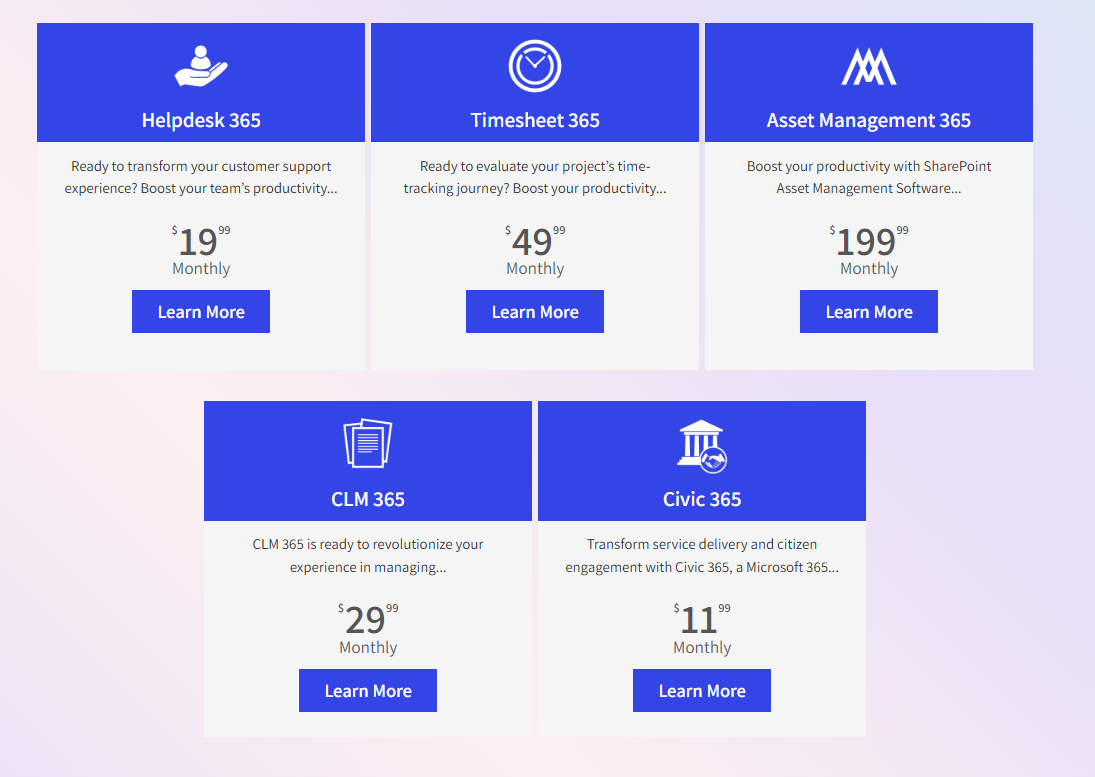 La tarification d’Apps365 n’est pas affichée de manière totalement standardisée, ce qui suggère une approche sur devis selon les usages. D’après notre analyse, le positionnement prix reste cohérent avec le marché des outils spécialisés Microsoft 365. Apps365 se situe généralement en dessous de solutions plus larges comme ManageEngine ou ServiceNow, tout en étant plus ciblé qu’un simple outil de reporting.