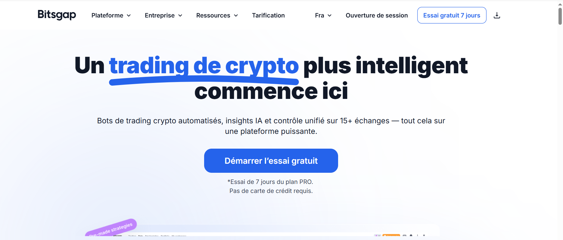 Bitsgap est une plateforme SaaS de trading de cryptomonnaies permettant de gérer des portfolios, d’automatiser des stratégies avec des bots et de trader sur plusieurs exchanges depuis une interface unique.