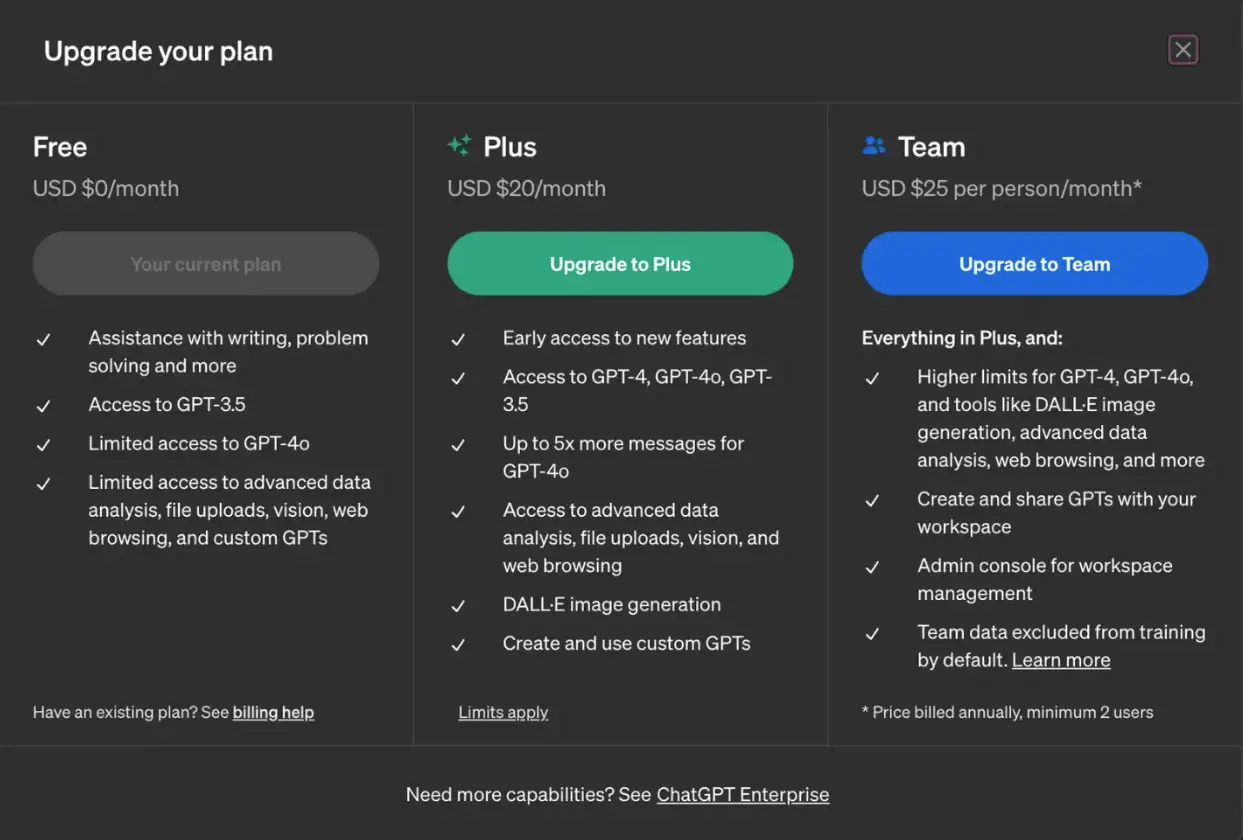 Si l’on compare à Jasper AI (à partir de 39 dollars/mois) ou Copy.ai (49 dollars/mois), ChatGPT se positionne bien en dessous pour une puissance supérieure.