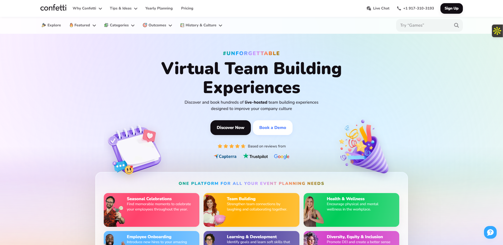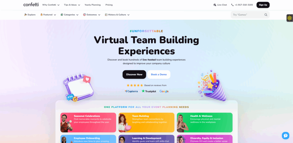 Confetti est une plateforme SaaS conçue pour aider les entreprises à organiser facilement des événements d’équipe virtuels, hybrides ou en présentiel. Fondée en 2014 par Lee Rubin, Confetti propose un catalogue complet de plus de 300 événements clés en main, allant du team building à la formation DEI, en passant par les fêtes d’entreprise.