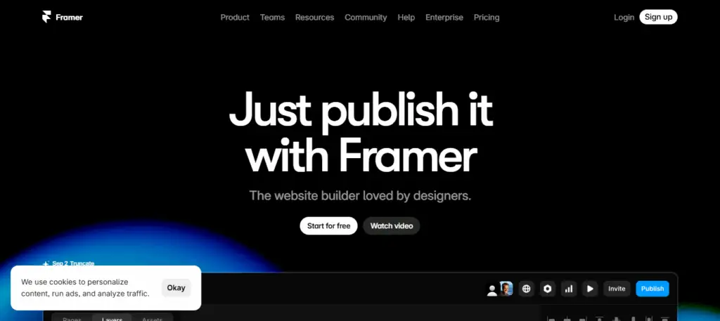 Conçu à l’origine pour les designers interactifs et ingénieurs UX, Framer cible aujourd’hui aussi les start-up, agences et entrepreneurs cherchant à créer des sites web élégants sans écrire de code. Il propose l’utilisation de composants réactifs, de CMS dynamiques, d’intégration Figma et d’autres fonctions puissantes pour construire des pages web évolutives. Framer combine design, animations et publication dans une même interface collaborative. C’est ce positionnement transversal qui le distingue sur un marché concurrentiel dominé par Webflow, Wix Studio ou Figma.