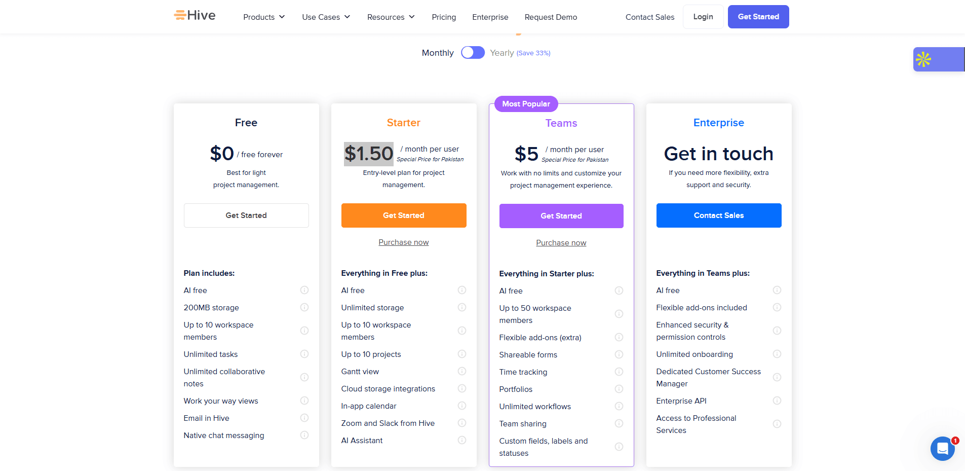 La tarification de Hive débute à 12 dollars par utilisateur/mois pour le plan Teams, qui donne accès à l’essentiel : vues projets, messagerie, automatisations, intégrations. Le plan Enterprise, tarifé sur devis, inclut des fonctionnalités poussées (analytique avancé, SSO, gestion des droits étendue).