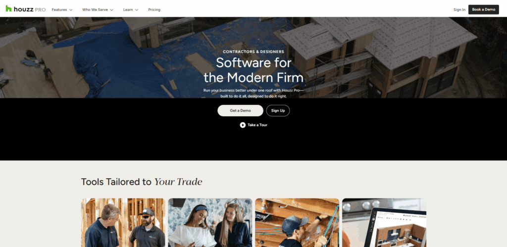 Avec Houzz Pro, les artisans, architectes d’intérieur ou entrepreneurs généraux peuvent créer des devis clairs, suivre l’état d’avancement des projets, gérer leurs leads et automatiser leur marketing.