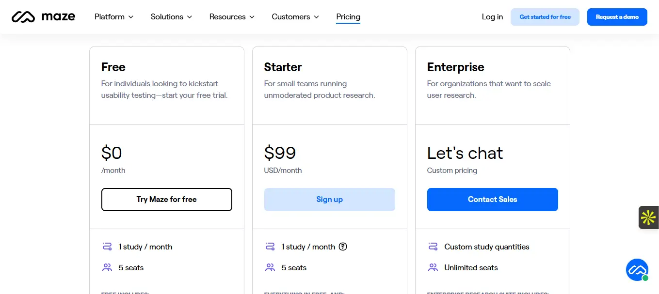 Maze propose une tarification basée sur le nombre d’utilisateurs et les capacités d’analyse. Le plan gratuit inclut 1 projet à la fois, avec 300 vues par an, suffisant pour une première approche. Le plan Professional à 75 dollars par mois permet d’utiliser l’outil de manière plus soutenue avec tests illimités et intégration Figma. Le plan Organization, sur devis, est adapté aux grandes équipes avec SSO et analyses avancées. En comparaison, Useberry propose une approche similaire autour de 24 dollars/mois, mais avec moins de fonctionnalités analytiques. Lookback met davantage l’accent sur les entretiens vidéo mais coûte environ 99 dollars/mois. Par rapport à ces solutions, Maze se démarque par sa polyvalence et ses intégrations. Le retour sur investissement devient tangible dès que les tests sont menés régulièrement. Attention toutefois aux coûts cachés, notamment en cas de dépassement des quotas ou pour mobiliser des testeurs via leur panel interne.