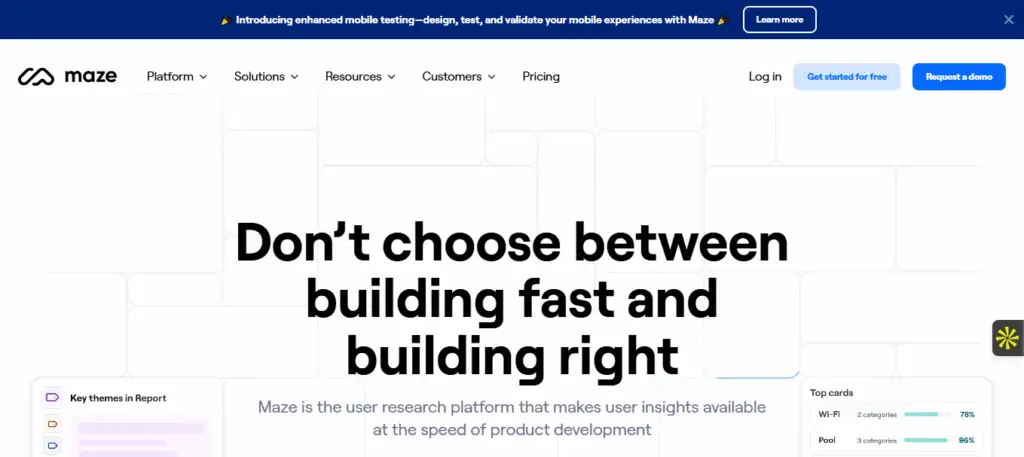 Maze est une plateforme SaaS qui permet de tester rapidement des prototypes et des designs pour obtenir des insights utilisateurs exploitables.