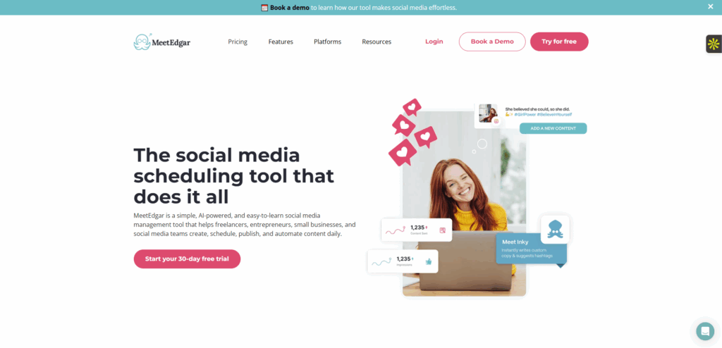 MeetEdgar est un logiciel SaaS spécialisé dans la gestion et la planification des réseaux sociaux. Il a été développé par l’entreprise Social Bliss, Inc. et se positionne sur le marché des outils de social media automation. Contrairement à des plateformes généralistes comme Hootsuite ou Buffer, MeetEdgar mise tout sur la réutilisation intelligente du contenu pour automatiser la présence sur les réseaux. L’outil permet de programmer, recycler et publier des contenus automatiquement selon des plages horaires personnalisables.
