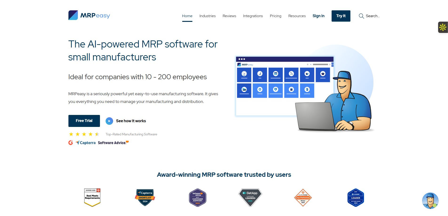 MRPeasy jouit de bonnes notes sur les plateformes de référence, ce qui renforce notre avis favorable. Sur G2, il affiche une note de 4.4/5 basée sur 59 avis, et sur Capterra également 4.4/5 avec 392 évaluations. Ces scores démontrent une constance dans les performances et la satisfaction client, portée par une expérience utilisateur maîtrisée. Les avis MRPeasy saluent régulièrement l’accompagnement, la stabilité et la clarté de l’outil.