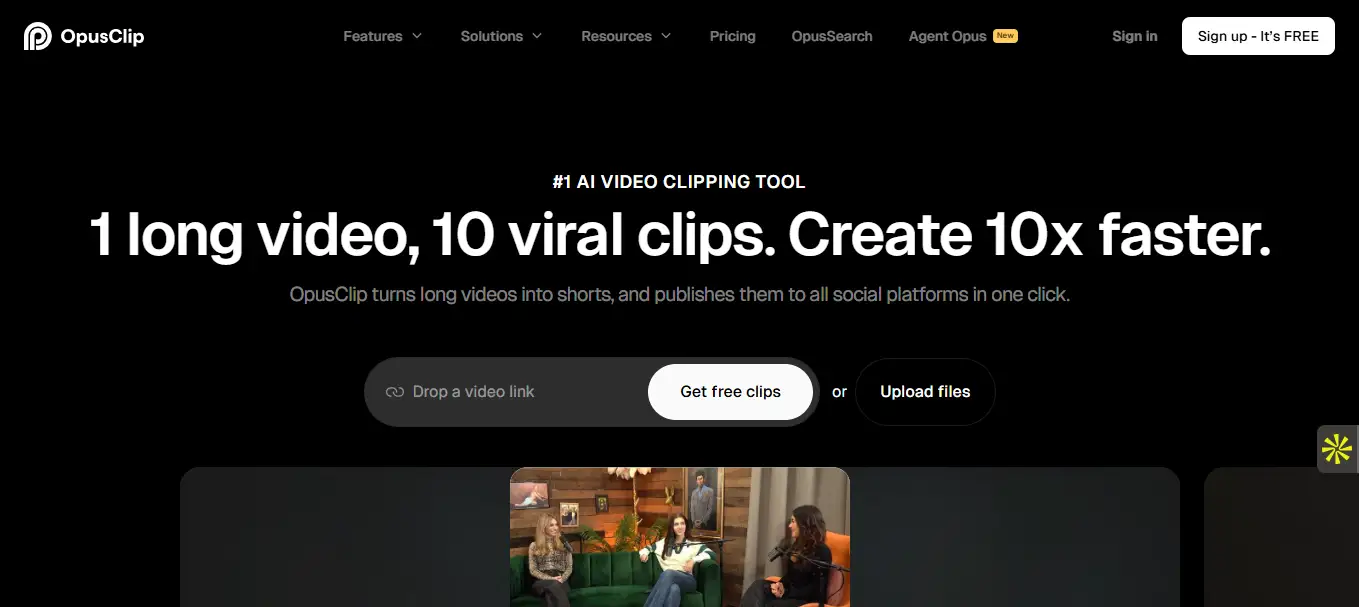 Opus est un logiciel SaaS de génération automatique de clips vidéo courts à partir de vidéos longues, pensé pour maximiser la visibilité sur les réseaux sociaux. Propulsé par l’intelligence artificielle, il permet de transformer une vidéo YouTube de 30 minutes en une série de clips prêts à poster sur TikTok, YouTube Shorts, Instagram Reels ou LinkedIn. Lancé par la société Opus Clip Inc., l’outil cible avant tout les créateurs de contenu, les podcasteurs, les formateurs en ligne, les agences marketing et les entreprises cherchant à renforcer leur engagement social.