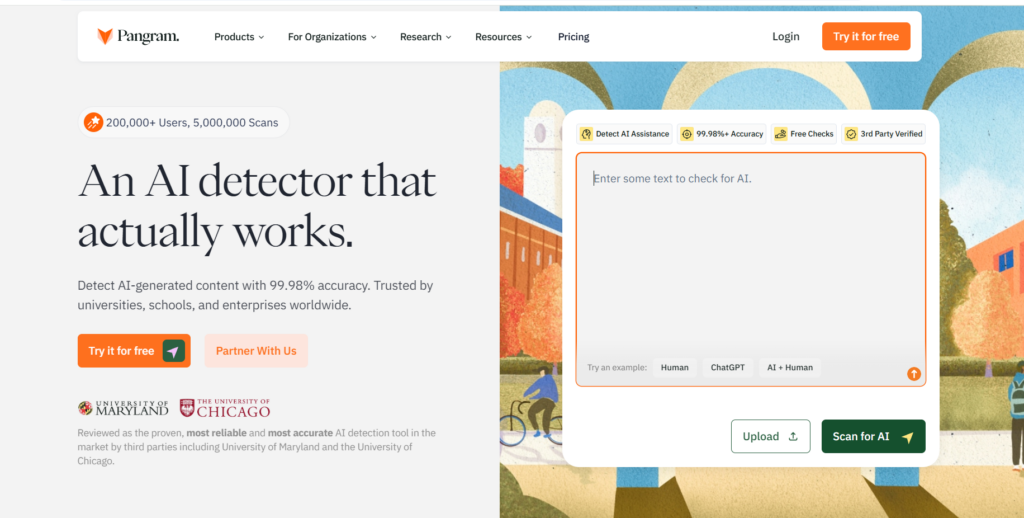 Pangram est l’un des rares outils dont les performances ont été rigoureusement testées et validées par des tiers indépendants, notamment l’Université de Chicago et l’Université du Maryland. Cette validation externe en fait la solution la plus fiable pour les départements de recherche et les établissements d’enseignement supérieur.