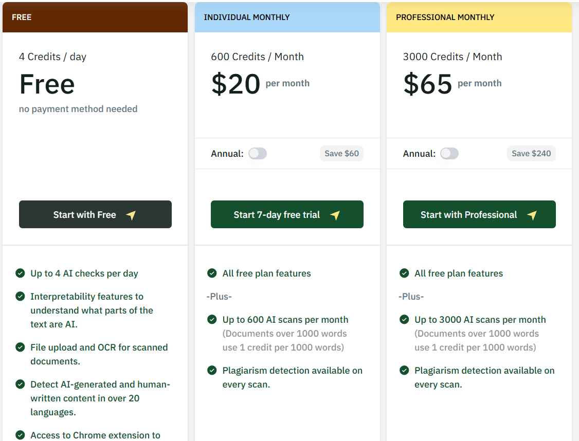 Pangram propose un accès gratuit pour les vérifications ponctuelles. Pour les organisations et les besoins de volumes élevés, des tarifs personnalisés sont appliqués en fonction de l’usage.