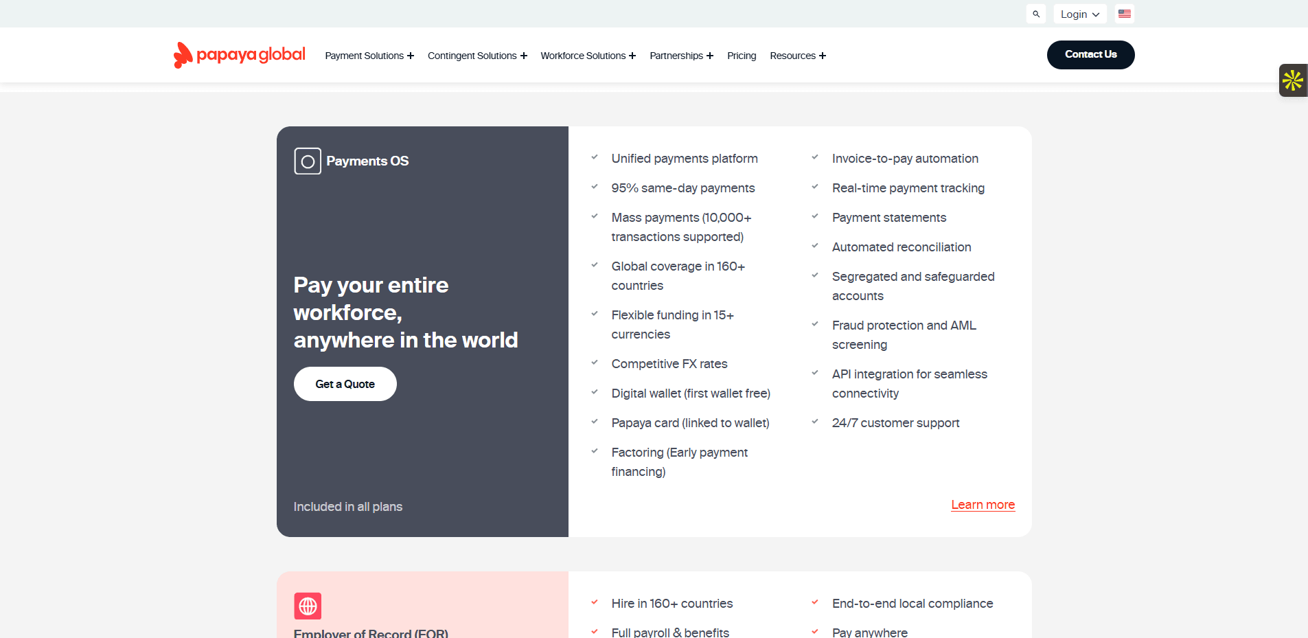 Grâce à une infrastructure moderne en cloud, Papaya Global unifie la paie (par entité ou via EOR), les contrats, les avantages sociaux et les rapports RH dans une seule interface. Elle permet aux entreprises d’accéder à des données harmonisées et à une vue globale de leurs effectifs, quels que soient les statuts d’embauche ou les pays. L’originalité de Papaya réside dans son réseau de partenaires locaux et ses capacités à gérer à la fois les employés directs, indirects ou indépendants tout en maintenant la conformité légale. Cet outil s’adresse à un marché en pleine expansion : les entreprises en forte croissance qui s’étendent à l’international. Son positionnement premium et sa spécialisation en font pourtant une solution de niche, davantage orientée vers les moyennes et grandes entreprises.