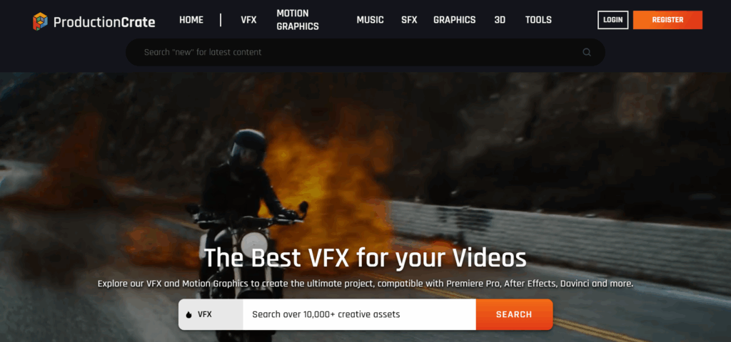 ProductionCrate est une bibliothèque créative d’assets incluant VFX, motion graphics, vidéos stock et effets sonores pour les productions vidéo.