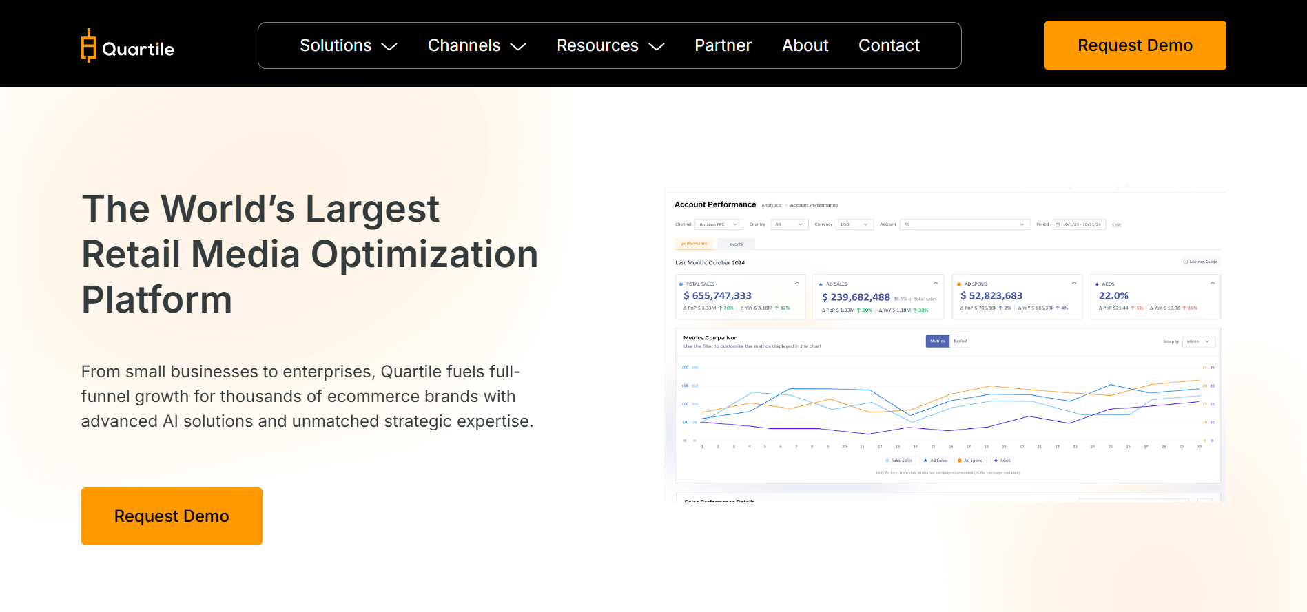 Quartile est une plateforme SaaS d’optimisation publicitaire dédiée aux e-commerçants. Développée par l’entreprise Quartile LLC, elle exploite le machine learning pour automatiser la gestion des campagnes publicitaires sur les canaux majeurs : Amazon Ads, Google Ads, Facebook/Instagram et Walmart Ads.