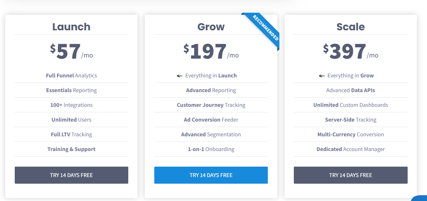 La tarification de SegMetrics repose sur plusieurs plans evolutifs adaptes au volume de donnees et aux besoins analytiques. Meme si les prix exacts dependent de la configuration, SegMetrics se positionne comme un outil premium. Le cout se justifie par la profondeur des analyses et l impact direct sur les revenus. Compare a Google Analytics, SegMetrics est plus cher mais beaucoup plus oriente business. Face a des solutions comme Mixpanel ou Amplitude, SegMetrics se distingue par son approche revenue centric.