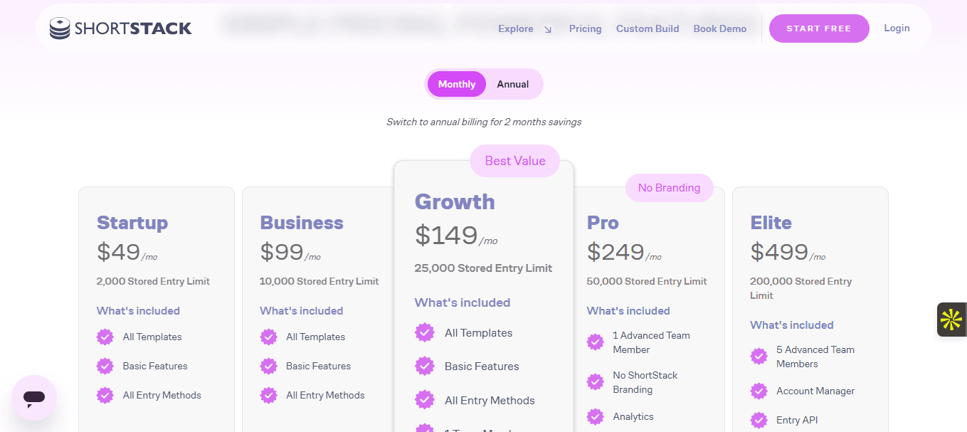 La tarification de ShortStack commence à 99$/mois pour le plan Starter (jusqu’à 10K vues/mois, 2k adresses collectées). Le plan Business à 249$/mois dévoile tout le potentiel de l’outil, avec 100K vues, intégrations, automatisations email et gestion de concours avancée. Un plan Agency est proposé à 499$/mois, adapté aux agences traitant plusieurs comptes clients. À noter que ShortStack propose une version gratuite limitée avec un seul actif, utile pour tester.