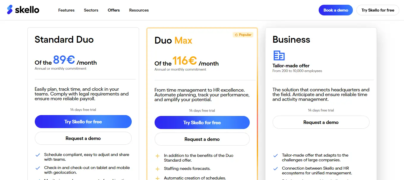 Skello est un logiciel SaaS de gestion des plannings et du personnel spécialement conçu pour la restauration, le retail et l’hôtellerie. Il permet d’automatiser la création des emplois du temps, le suivi des heures travaillées et la gestion administrative. La solution propose également des outils de communication interne et de prévision des coûts de main-d’œuvre.