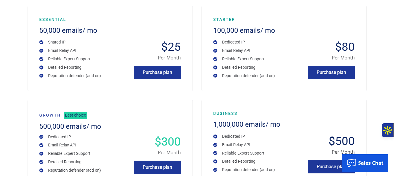 SMTP propose une grille tarifaire basée sur les volumes mensuels d’e-mails, débutant à 25 dollars par mois pour 50 000 e-mails. Ce positionnement est concurrentiel au vu de la cible B2B, en comparaison de SendGrid (19,95 dollars pour 50 000 e-mails) ou Mailgun (35 dollars pour volumes similaires). Les plans supérieurs incluent un accès à des IP dédiées, un support amélioré et plus de diagnostics. Les entreprises avec >100k e-mails/mois y trouvent un bon ROI, grâce à la stabilité et à la gestion fine des rebonds. Attention toutefois : il n’existe pas de plan gratuit ou d’offre d’essai illimitée, ce qui complique la découverte sans engagement. Les coûts annexes potentiels (IP dédiée, support prioritaire) doivent être anticipés dans le budget.