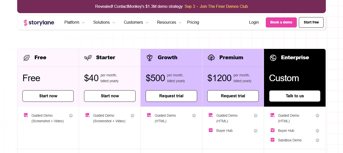 Sur un marché très concurrentiel conjuguant outils no-code, enablement commercial et onboarding produit, Storylane se distingue par sa facilité d’utilisation, la qualité des rendus interactifs et ses intégrations CRM/marketing automation. Le tout dans un positionnement hybride entre les sales techs et les plateformes de product-led growth.