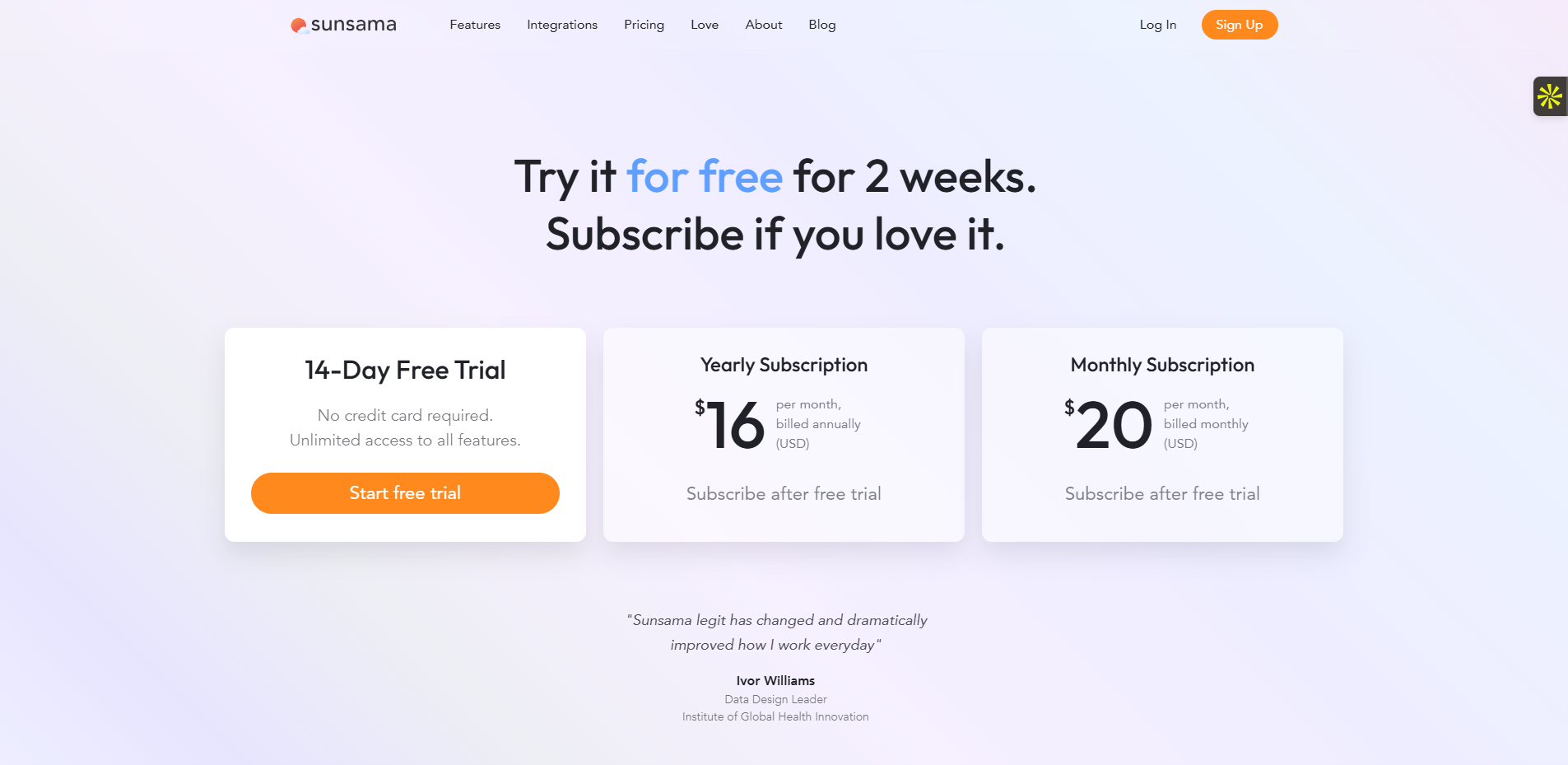 En résumé : Sunsama n’est pas pour tout le monde, mais pour ceux qui visent un meilleur équilibre au quotidien, il pourrait bien devenir indispensable. Un choix de qualité pour les professionnels exigeants, à condition d’en accepter l’approche minimaliste et les tarifs.