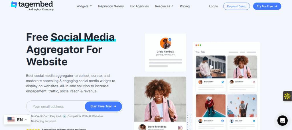 Tagembed est une plateforme SaaS qui permet d’agréger et d’afficher du contenu généré par les utilisateurs et des flux de réseaux sociaux sur votre site web. Elle offre des outils de modération, de personnalisation de widgets et de curation pour mieux engager votre audience. Compatible avec de nombreuses plateformes sociales, Tagembed s’intègre facilement à tout site ou CMS.