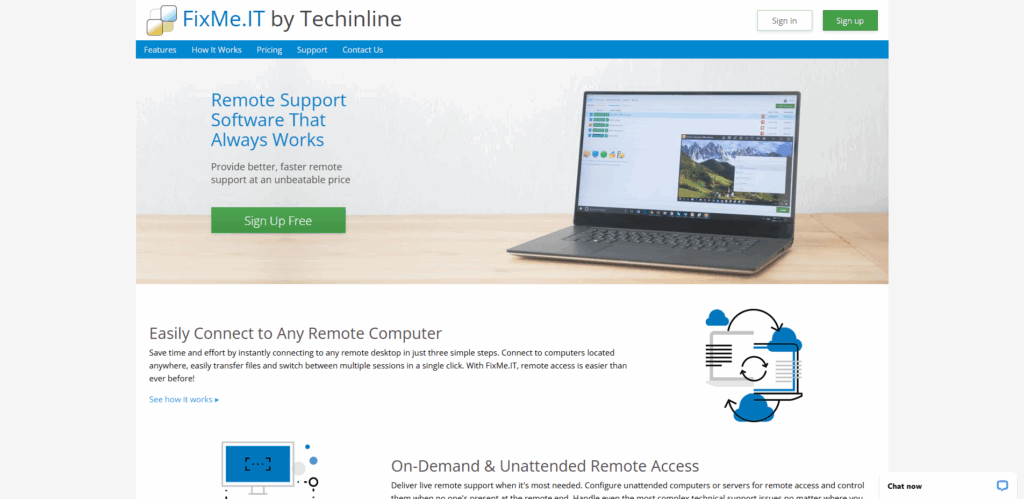 FixMe.IT est un logiciel SaaS de contrôle à distance développé par Techinline, spécialisé dans l’assistance technique entre postes et appareils distants. Son objectif principal : permettre à des techniciens et équipes IT de dépanner leurs clients ou collaborateurs sans se déplacer, via une connexion sécurisée, fluide et sans configuration complexe.