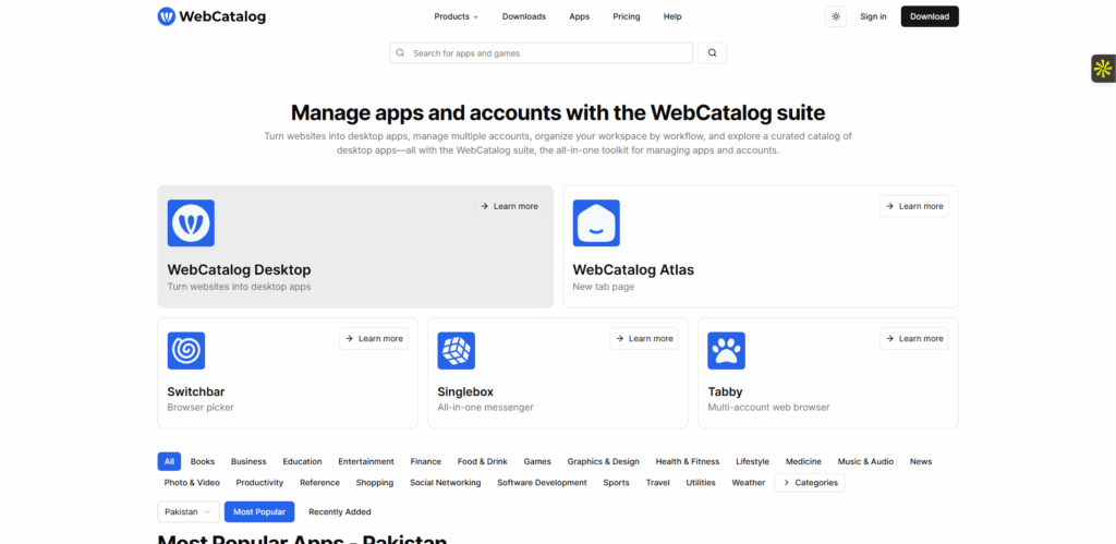 WebCatalog est une application qui vous permet de transformer vos applications web en applications de bureau natives sur Windows, macOS et Linux. Elle vous aide à regrouper et isoler vos web apps pour améliorer votre productivité. L’interface est simple et personnalisable selon vos besoins.