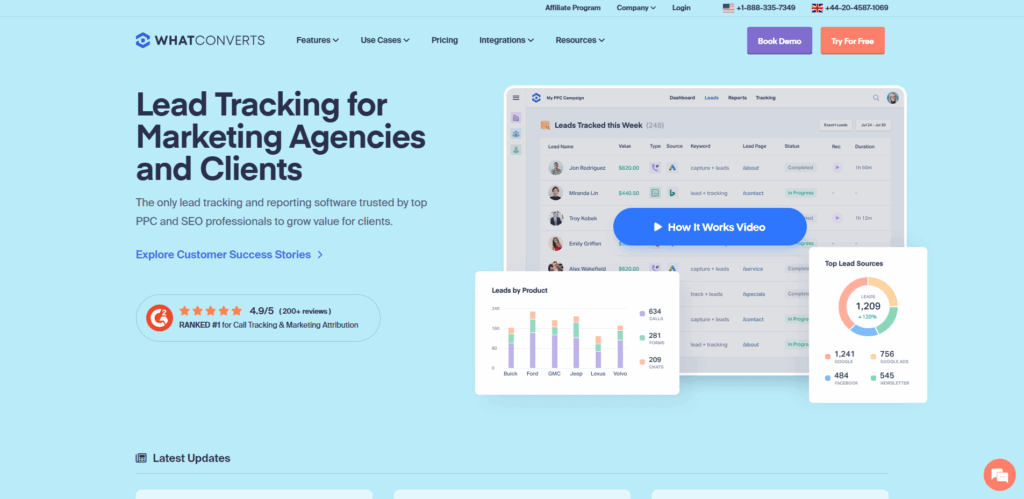 WhatConverts est une solution de suivi des appels, des formulaires et des ventes e-commerce qui identifie les canaux marketing générant des leads.